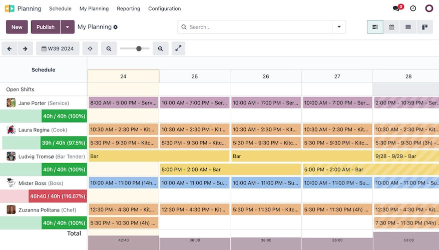 Intelligente Schichtplanung. Plane Schichten und teile sie mit den Mitarbeitern. Weise Schichten automatisch zu oder passe sie je nach Verfügbarkeit manuell an. Verwalte Rollen und stelle sicher, dass jede Schicht übernommen wird, indem du dein Team auf dem neuesten Stand oder bereit hälst.
