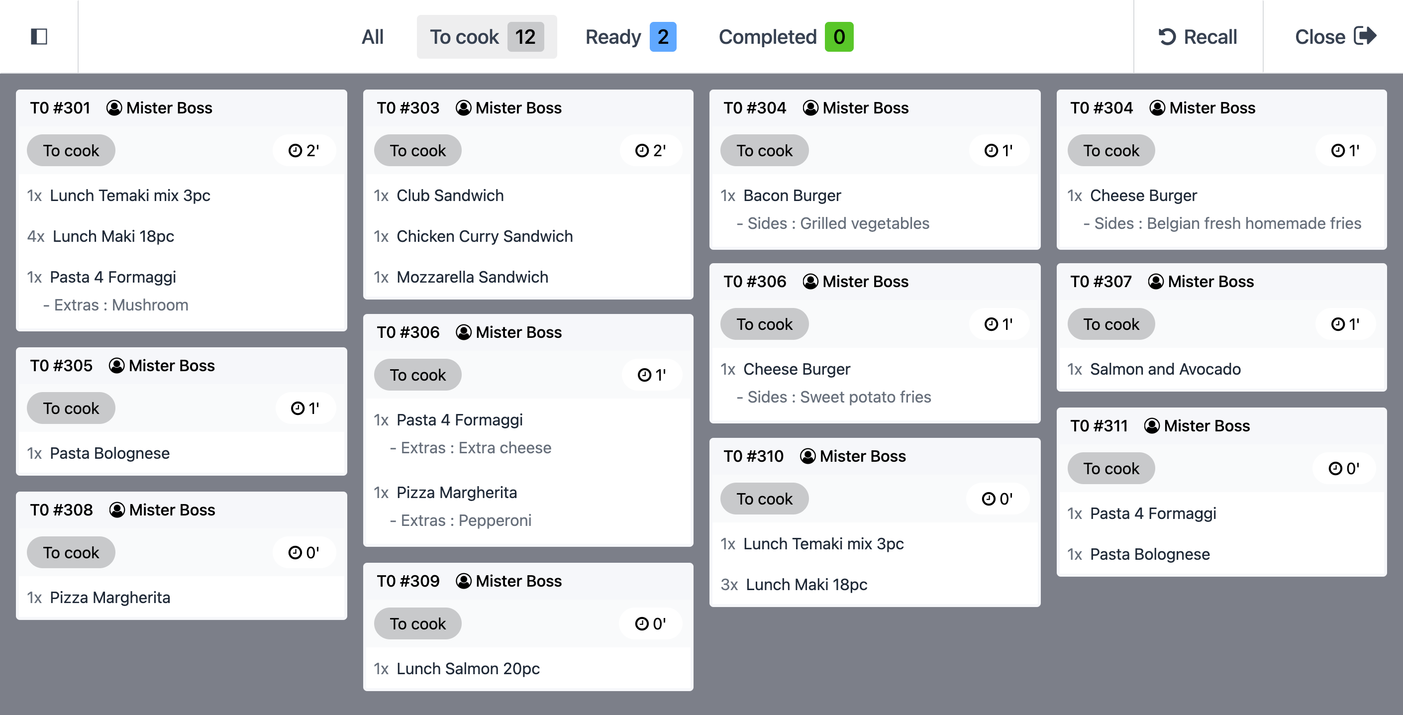 Integration mit Kassenystem und Küchendisplay. Verwalte einfach Tische und nimm Bestellungen auf. Navigiere durch den Raumplan, um Bestellungen hinzuzufügen, Menüs aus mehreren Gängen mit anpassbaren Kombis zu erstellen und Bestellungen für mühelose Kommunikation direkt an die Küche zu senden.