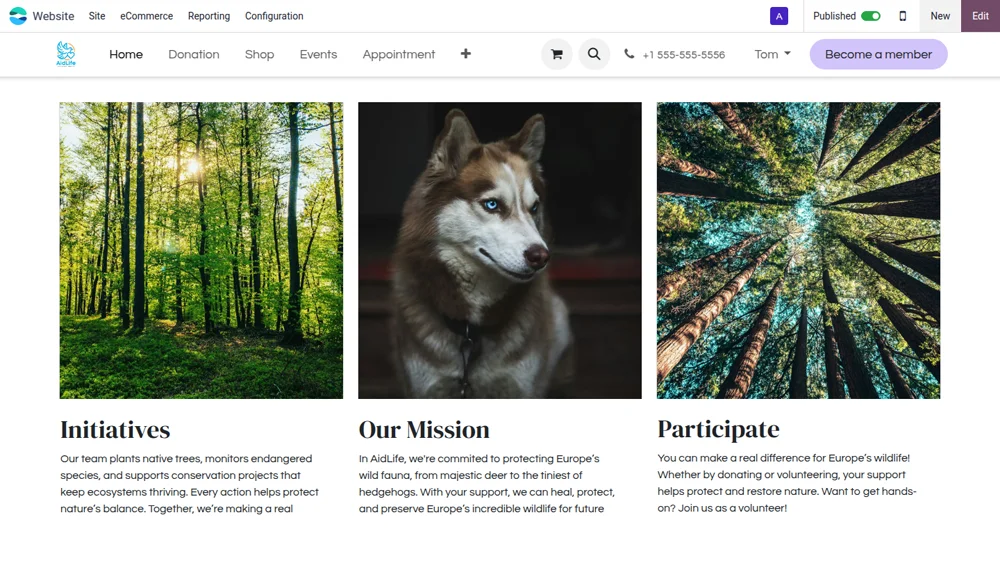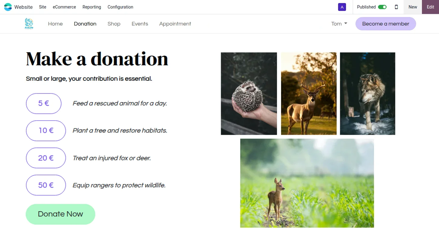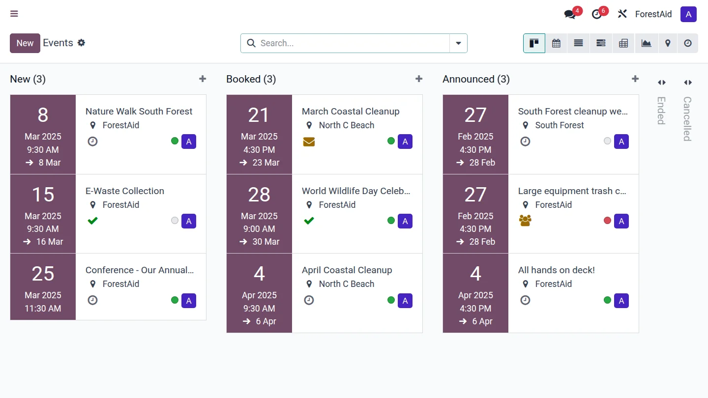 Odoo ist die beste Lösung, um Spenden einfacher zu sammeln, Spender und Freiwillige zu verwalten und eine coole Website zu erstellen, um für die Veranstaltungen und Kampagnen deiner Organisation zu werben.