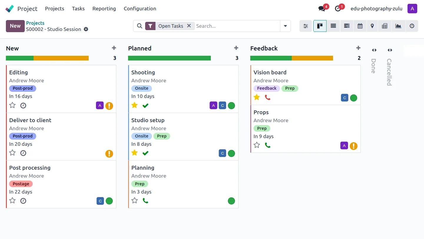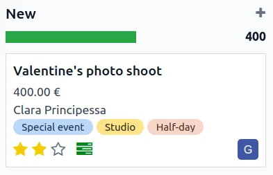 Sobald dein Angebot bestätigt ist, wird ein eigenes Projekt für dein Fotoshooting erstellt. So behältst du den Überblick mit einem übersichtlichen Dashboard, einer anpassbaren Pipeline, Stichwörter, Prioritäten, Zeitvorgaben und vielem mehr.