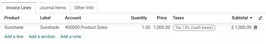 為說明現金收付制稅項對會計交易的影響,我們以銷售價格為 $1,000 的產品為例,其現金收付制稅率為 15%。