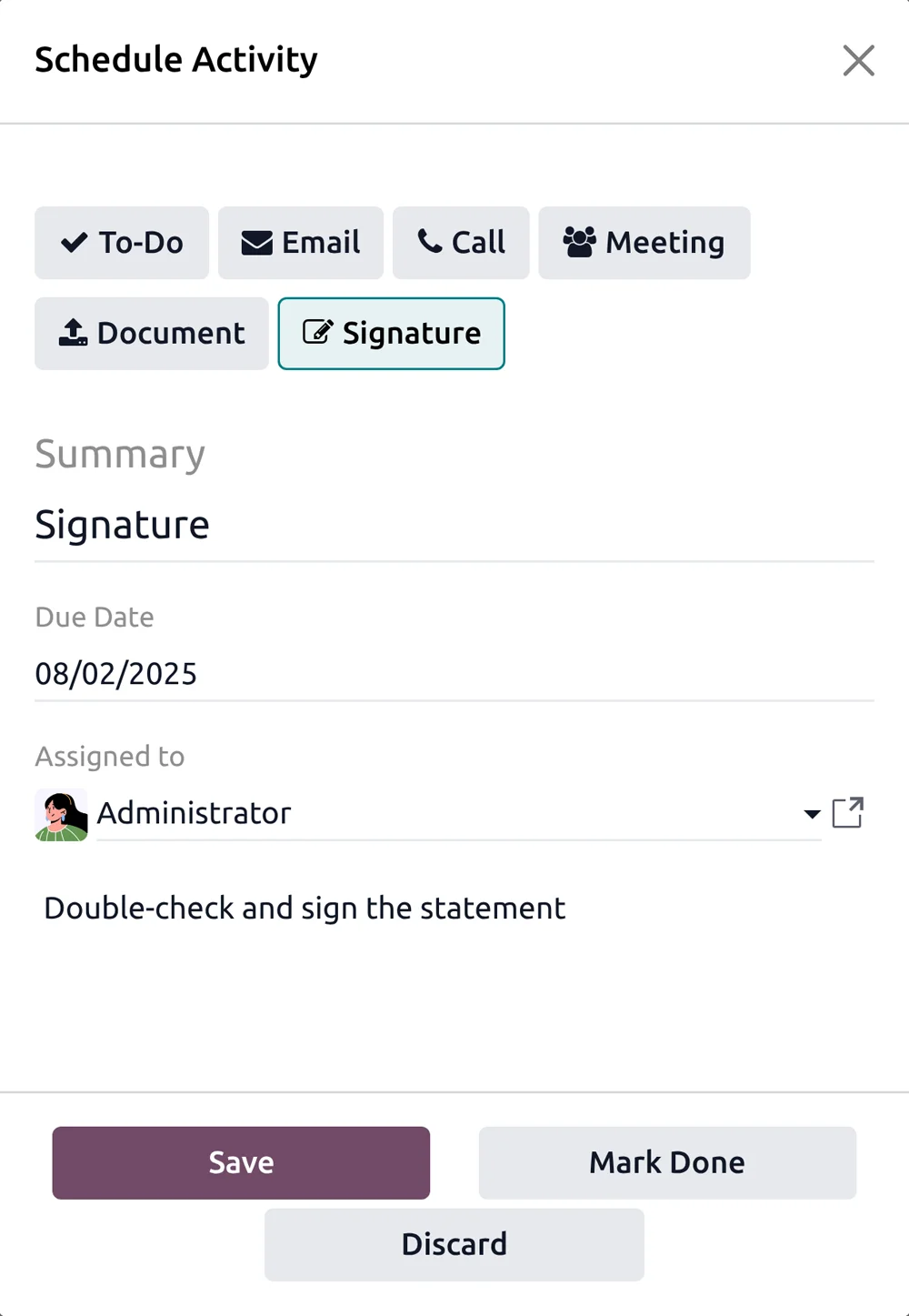 La aplicación Firma electrónica de Odoo garantiza que proporciones firmas válidas en línea con un solo clic.