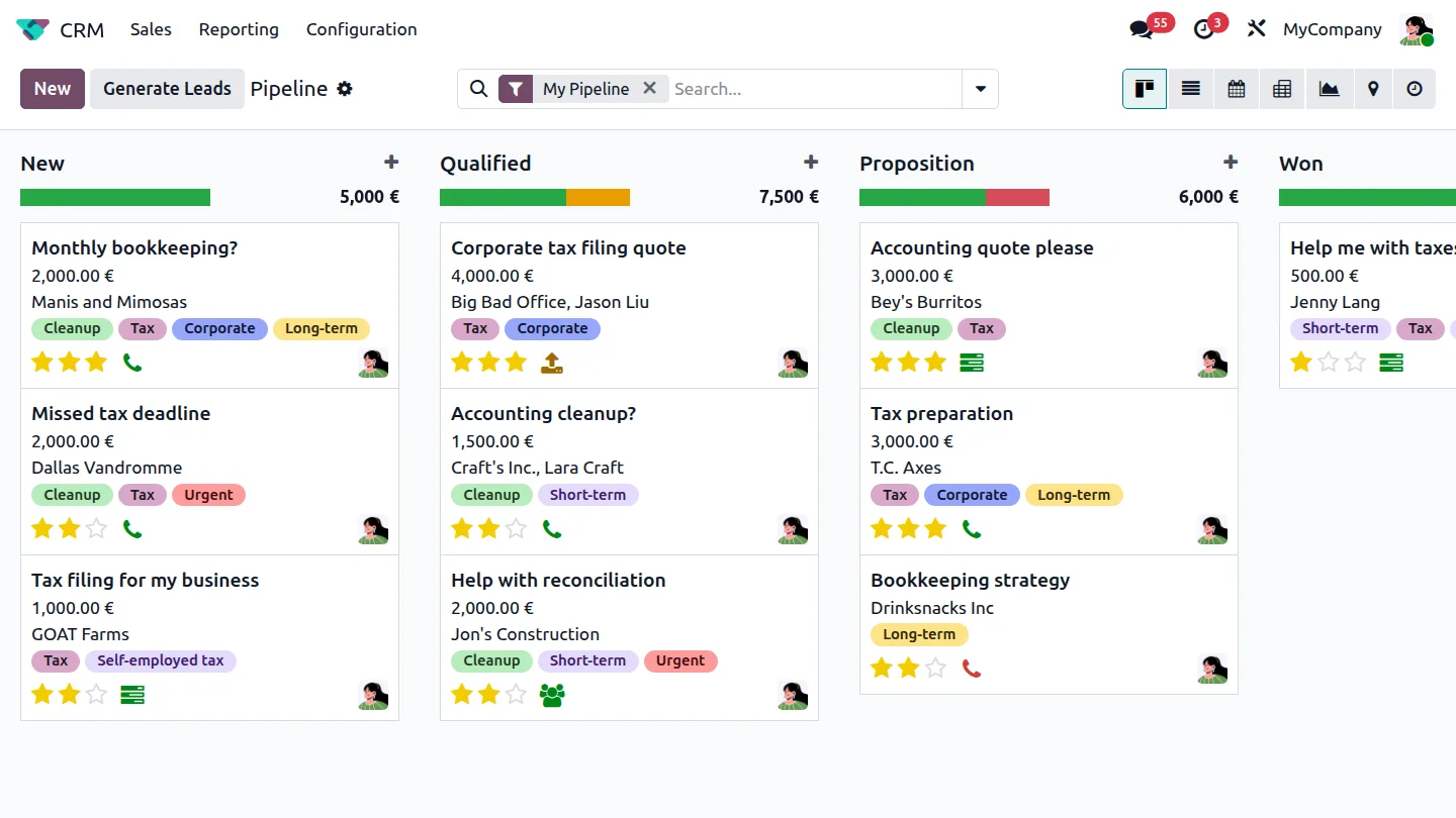 Tus leads estarán centralizados en un solo flujo intuitivo sin importar si los recibiste por correo, teléfono o formularios del sitio web. Programa seguimientos en un par de clics.