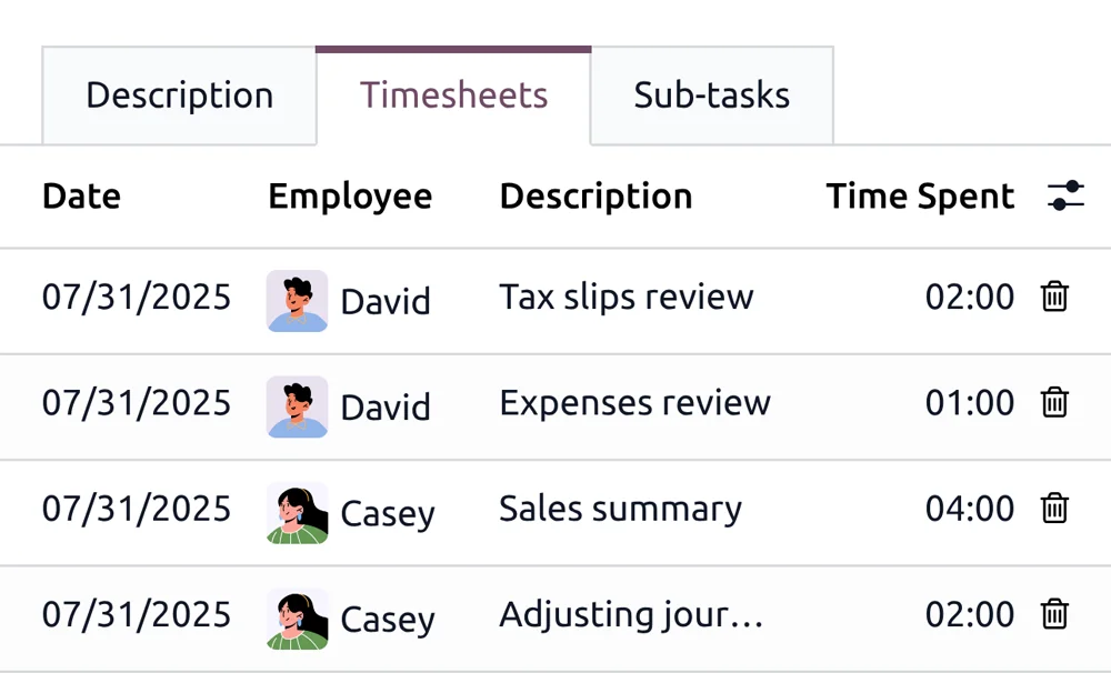 Registra el tiempo que se invierte en tareas y factura a los clientes según los registros. Configura tu registro por horas o por días, lo que prefieras, Odoo se ajusta a las necesidades de tu empresa.