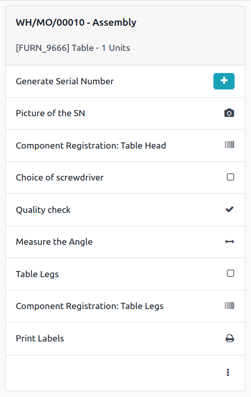 Suivez les composants ou utilisez des lots ou des numéros de série. Obtenez une traçabilité claire de toutes les opérations en un seul clic.