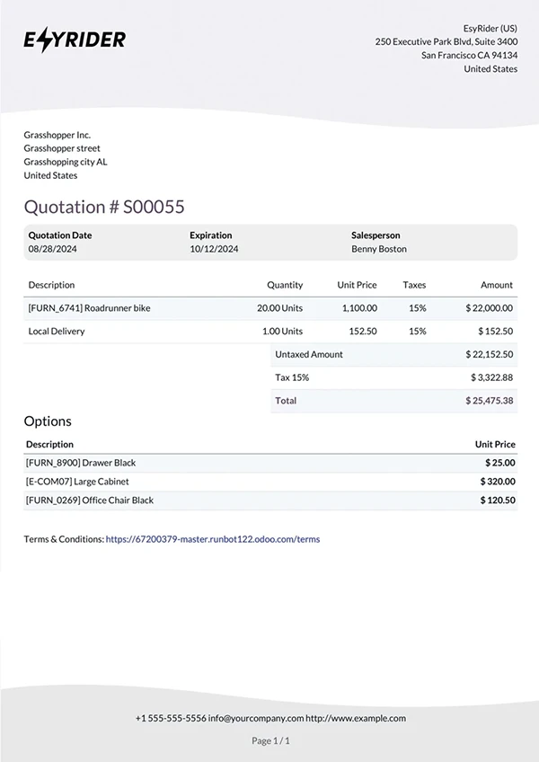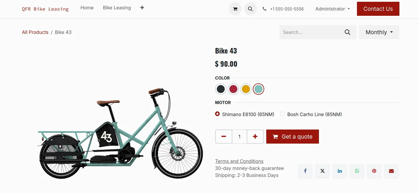 Upsell and cross-sell by adding related products to each bike. Sell bike, lease them, or rent for short term; Odoo supports all your flows.