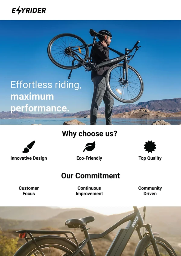 The product configurator enables adjustable features such as color, motor type, size, and accessories, ensuring your clients can configure their dream bike on your online store.