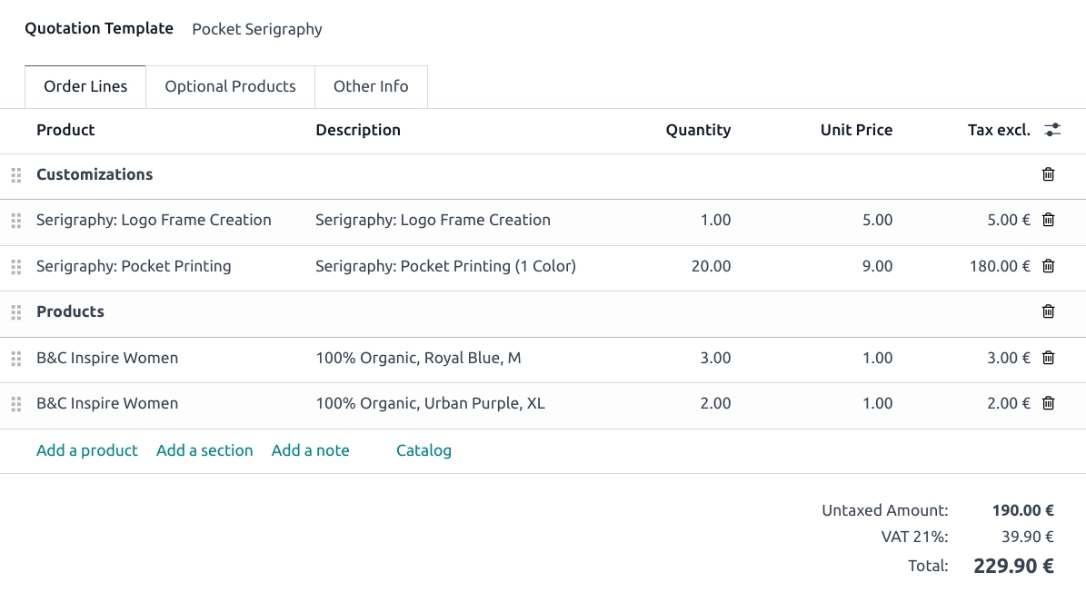 Odoo è una soluzione completa per la tua ditta di regalistica aziendale. Crea facilmente il tuo e-commerce, programmi fedeltà, gestisci le scorte in tempo reale, emetti fatture e molto altro ancora.