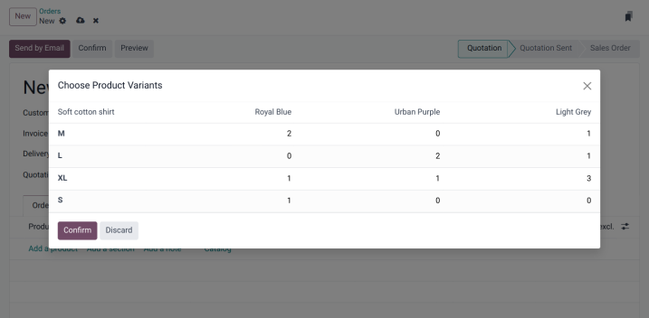 Ottimizza il processo di ordinazione con una griglia delle varianti che mostra tutte le combinazioni possibili degli attributi di un prodotto (ad es. dimensioni, colori), soluzione ideale per gli articoli comprati e venduti in lotti.