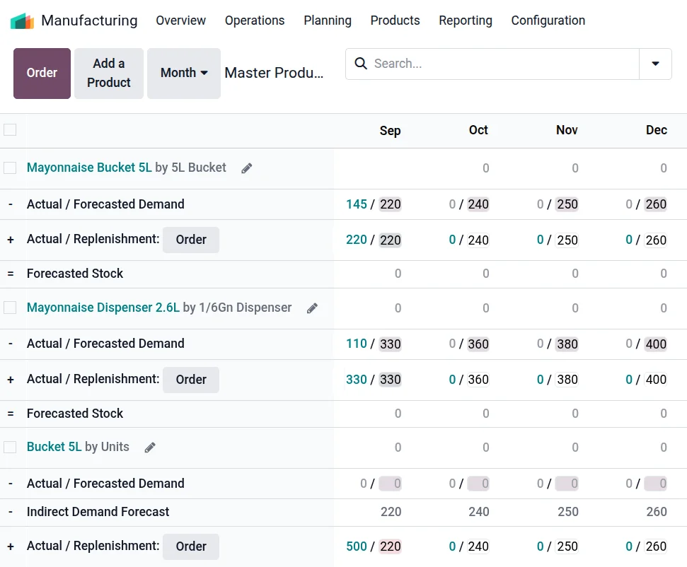 실제 수요에 맞추어 예측치를 조정하세요. Odoo를 통해 생산 능력을 극대화하고 업무 부하를 균형 있게 조정하며 일정을 즉시 조정하여, 생산 작업의 흐름을 유지합니다.