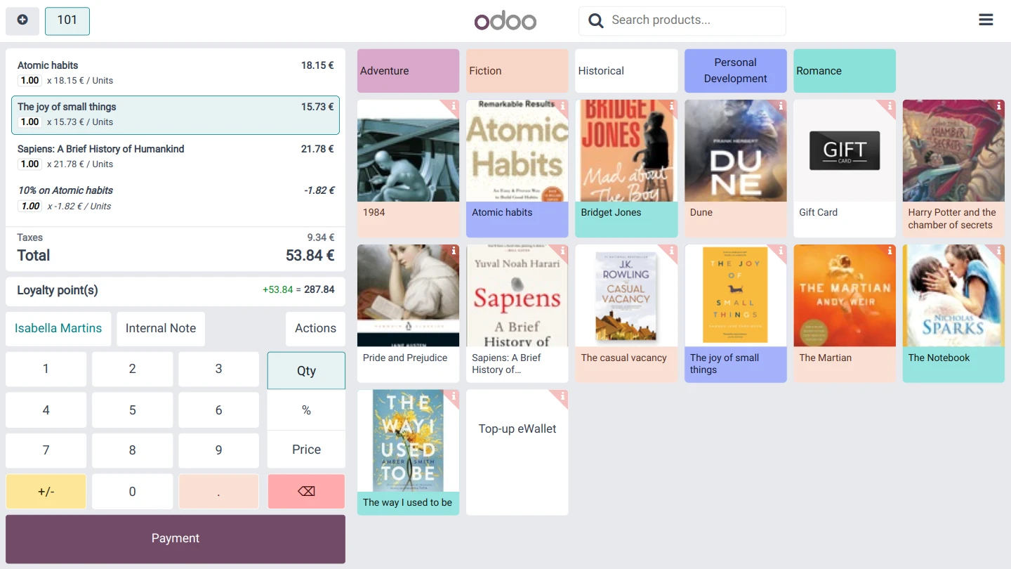Pradėti dabarSu Odoo pagalba galime generuoti ataskaitas apie populiariausias knygas ir procentinį produktų kategorijų pardavimo palyginimą. Šie padeda mums priimti protingesnius sprendimus, remiantis analizuojamais duomenimis. Jei man reikėtų apibūdinti Odoo vienu žodžiu, tai būtų "žiauriai svarbus" mano verslui.