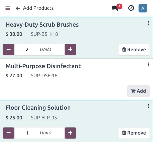 Set up replenishment rules to ensure that your stock always has the optimal levels of all cleaning products you need.
