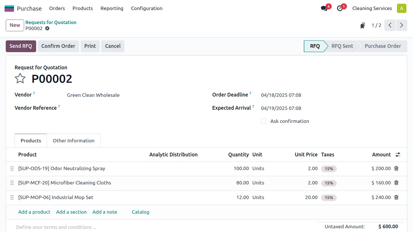 Streamline purchasing, secure the best vendor deals, and send requests for quotations in one click.