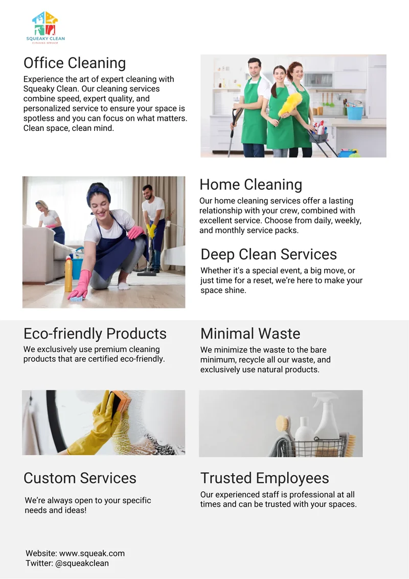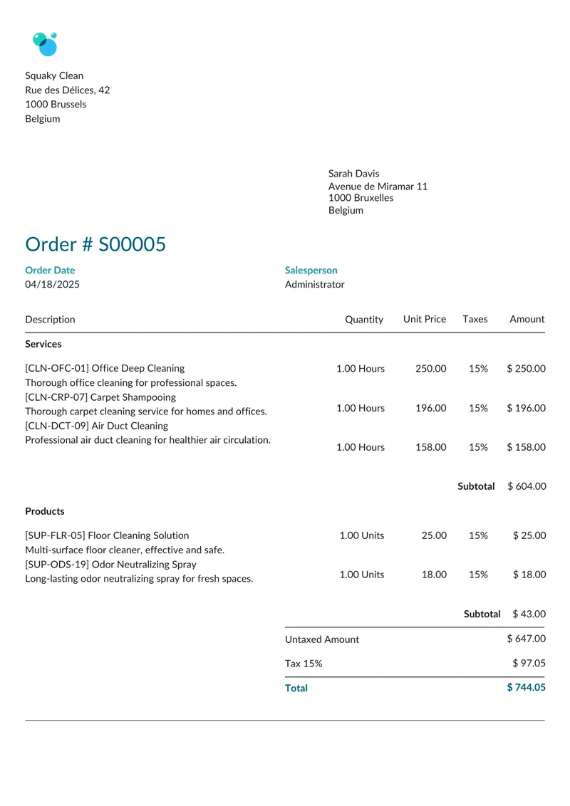 Save time with quotation templates that include a preconfigured set of services and cleaning products needed to handle the job.