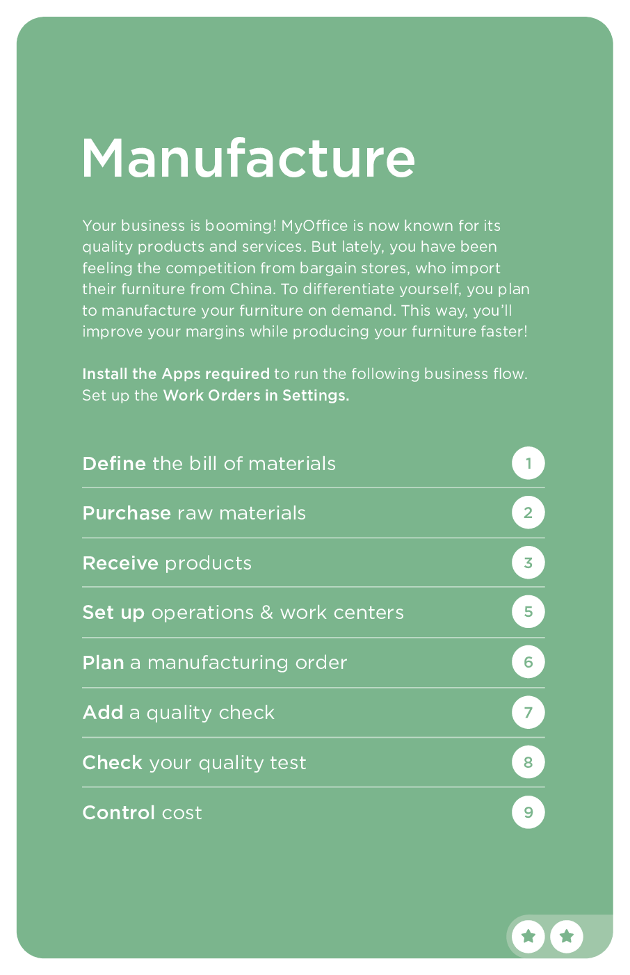 Heb je ooit gedroomd over het oprichten van je eigen bedrijf? Of je afgevraagd hoe je zoiets aanpakt? Met Odoo Scale-Up! leer je dat allemaal aan de hand van 10 verschillende businesscases.