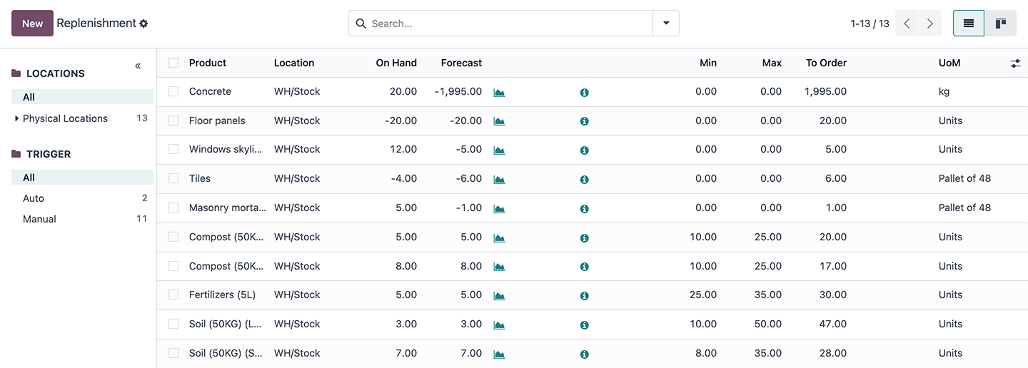 Automated replenishment. For trackable items, set up automated reordering rules to restock your materials. For other items, create recurring tasks in the Project app to monitor stock manually.
