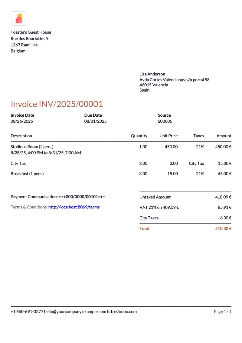 Capture attention with a stunning website, accept online bookings, manage availabilities, and take care of your guests from check-in to check-out with Odoo.